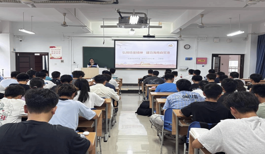 为深入贯彻落实习近平总书记在纪念中国人民抗日战争暨世界反法西斯战争胜利80周年大会上的重要讲话精神,教育引导广大青少年厚植爱国情怀、传承红色基因、砥砺强国之志,充分发挥党政干部、劳动模范、专家学者等各类社会主体育人功能,2025 年 9 月 29 日,我院邀请中共海南省委党史研究室科研宣教处处长卫静春走进思政课堂,为本科班级的学生讲授思政课。此次授课将地方红色精神与理想信念教育深度融合,为青年学子带来了一堂兼具历史厚度与现实意义的课程。