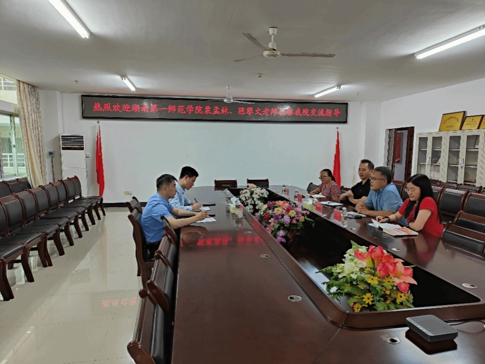 4月11日上午,湖南第一师范学院马克思主义学院国家社科基金重点项目(项目名称为:调查研究在习近平新时代中国特色社会主义思想实践课中的运用)课题组粟孟林、陈攀文一行来我院调研交流。bv伟德国际1946蔡文举副院长、王一闳副院长、习近平新时代中国特色社会主义思想概论教研室主任刘涵、骨干教师方英群参加交流。