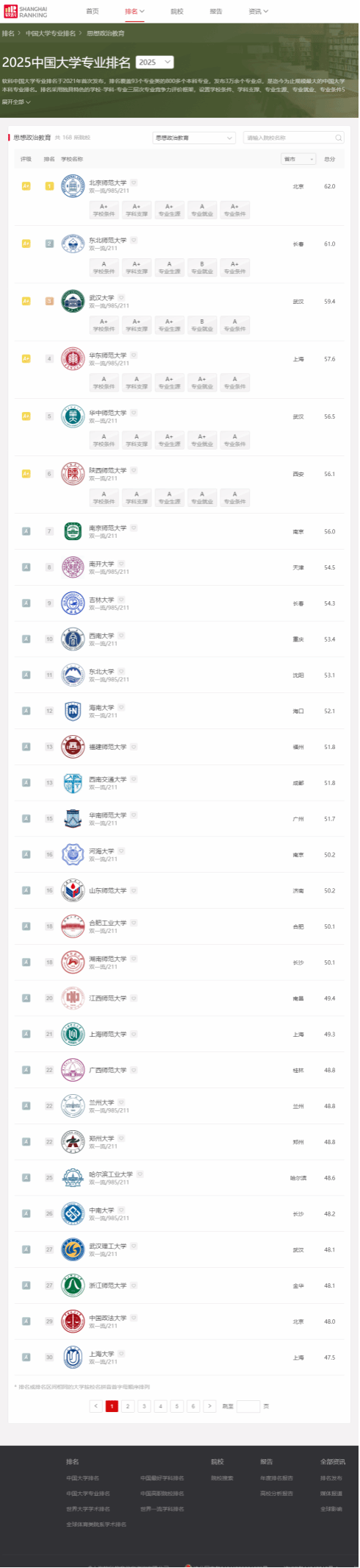 2025年6月18日,高等教育专业评价机构软科正式发布2025“软科中国大学专业排名”。bv伟德国际1946思想政治教育本科专业以全国第12名的成绩再次进入A类行列,继2022年31名、2023年28名、2024年23名,排名继续稳步提升。