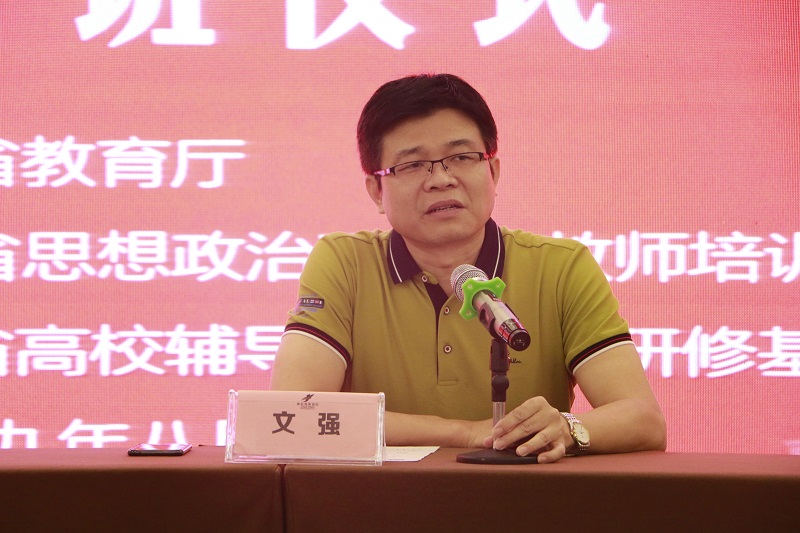 文强在开班仪式上讲话。他代表省教育厅向这次培训班的顺利举办表示祝贺,对参加研修和培训的老师表示热烈欢迎,对承办此次活动的伟德国际1946手机、bv伟德国际1946表示感谢。他强调,全体学员要提高思想认识,增强做好思政课教师和辅导员工作的责任感和紧迫感;要加强业务学习,以坚定的信仰、扎实的学识、高尚的品行影响学生,不断提高工作能力和水平;要加强培训纪律,增强培训工作的实际效果,做好学习成果转化。他希望,全体参会人员要珍惜机会,遵守纪律,认真向专家学者学习,切实提高自身的理论水平和实际能力,为新形势下我省高等教育的发展而努力,为海南“一区一港”建设贡献自身力量。