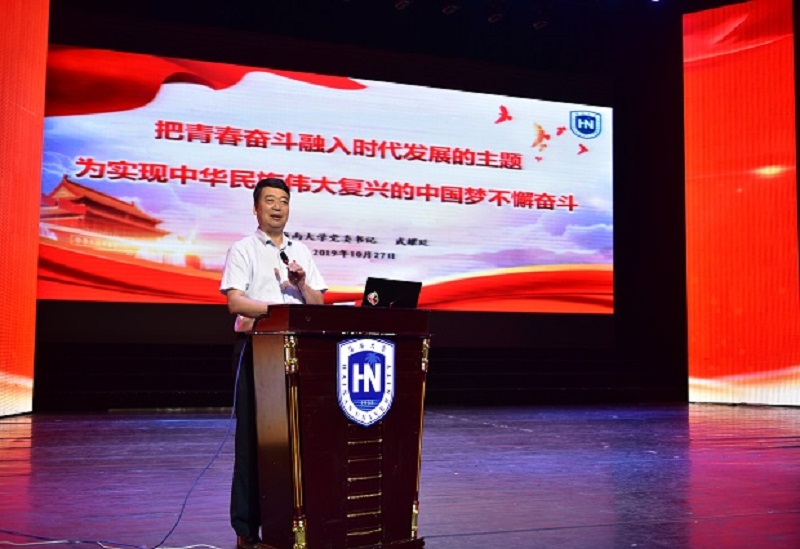 伟德国际1946手机武耀廷书记给现场师生作报告