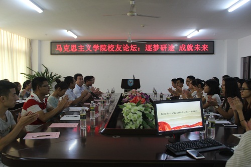 9月11日下午,为贯彻落实海南省委宣传部与伟德国际1946手机共建bv伟德国际1946的共建内容,进一步提升马学科学生培养质量,充分利用校友资源,帮助在校研究生合理规划职业生涯,提升就业竞争力,bv伟德国际1946主题为“逐梦研途 成就未来”的校友论坛在社科楼A311举行,为学院系列校友论坛活动拉开序幕。
