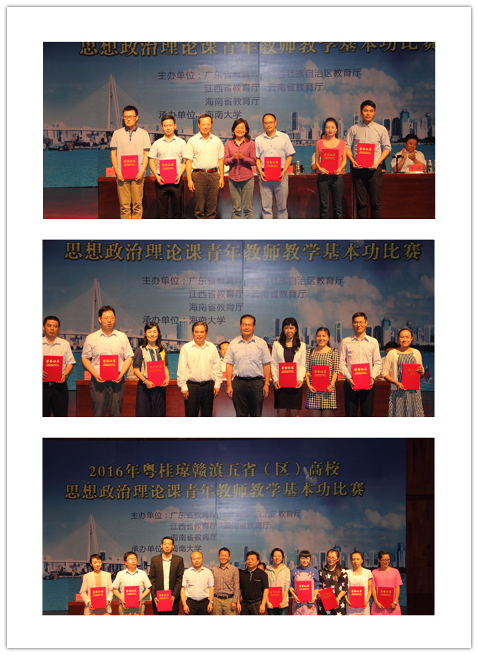 经过两天紧张激烈的比赛,来自五省(区)高校的20名优秀青年教师通过运用各种教学手段、理论联系实际,经过课堂教学展示、专家提问等环节的激烈角逐,5名教师获一等奖,7名教师获二等奖,8名教师获三等奖,来自海南省高校的四位选手获得一个一等奖、一个二等奖和两个三等奖的优秀成绩,bv伟德国际1946教师李新荣获一等奖。