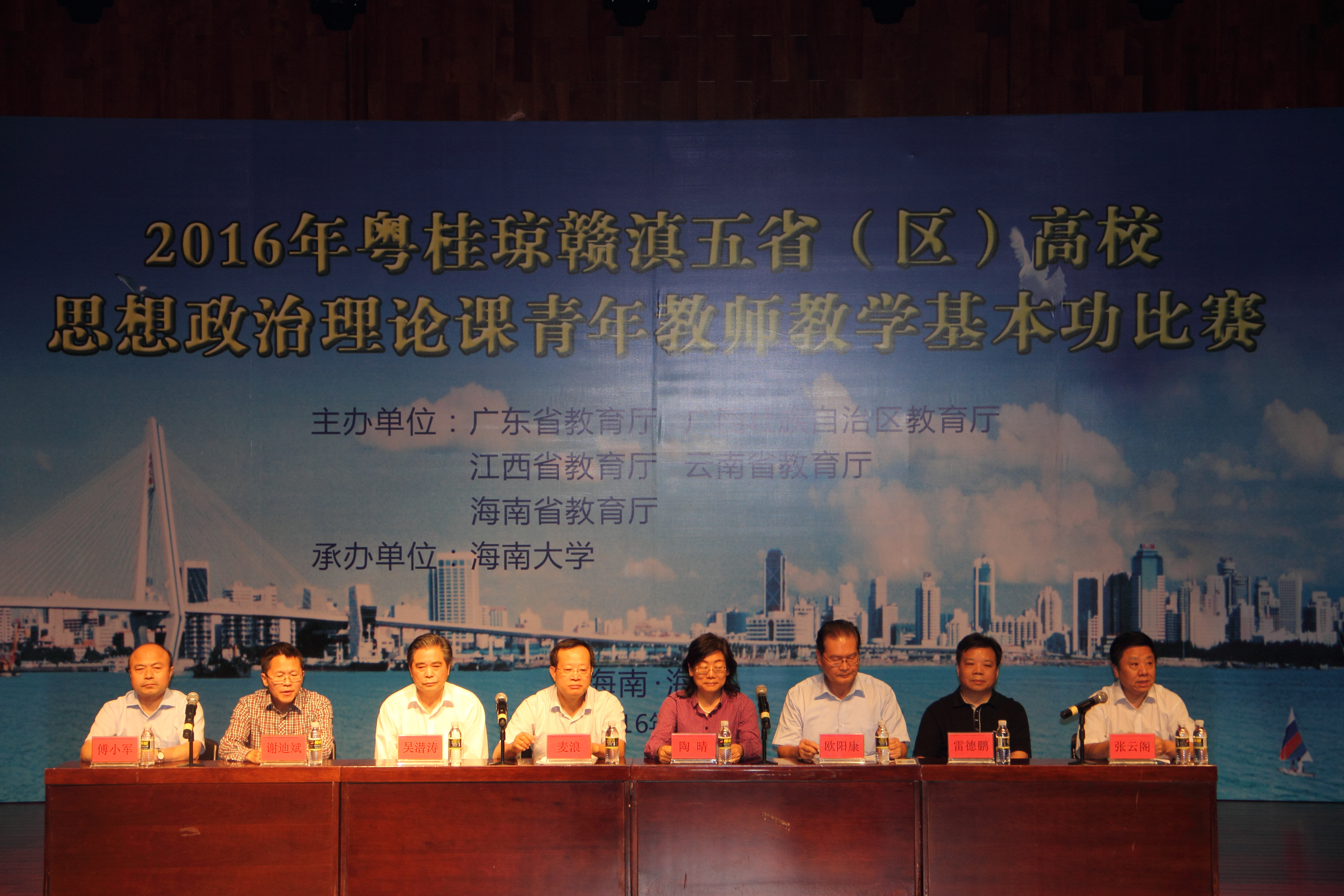 2016年11月2日—5日,第八届粤桂琼赣滇五省(区)高校思想政治理论课青年教师教学基本功比赛在我校隆重举行,省委教育工委专职副书记麦浪,广东、广西、海南、江西、云南等五省(区)教育工委、教育厅有关负责人,伟德国际1946手机党委常务副书记廖清林出席,来自五省(区)近100余名教师代表参加开幕式。会议由海南省教育厅思政处处长文强主持。