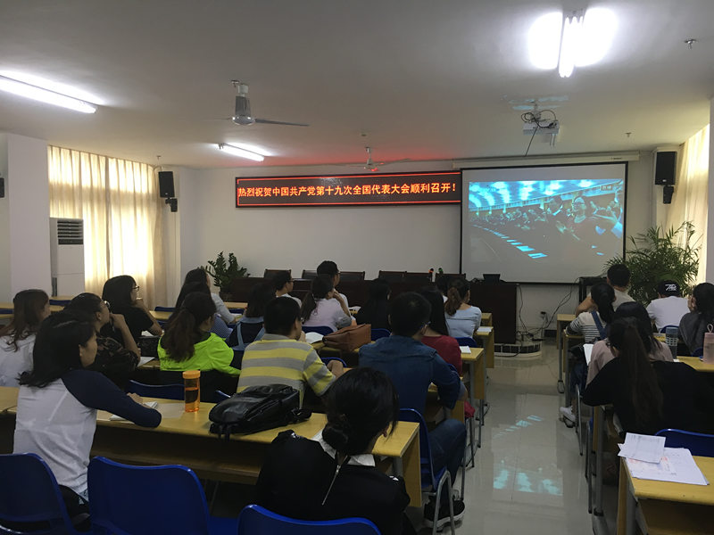 10月18日上午,bv伟德国际1946党委认真组织师生观看中国共产党第十九次全国代表大会开幕会直播。院领导李辽宁、张井富、杨娜,部分教职工和学生100多人全程观看开幕会,直播活动在社科楼A311、A315和A618多媒体课室同步进行。