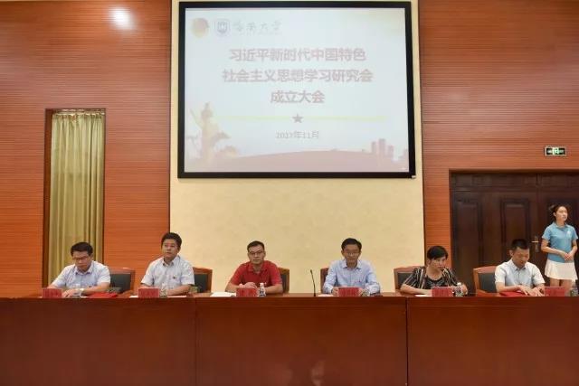 为深入学习宣传贯彻党的十九大精神,不断加强习近平新时代中国特色社会主义思想的学习和研究,为青年学生提供交流、学习、研讨的平台,11月3日下午,伟德国际1946手机习近平新时代中国特色社会主义思想学习研究会成立大会在学校思源学堂多功能厅隆重召开。伟德国际1946手机党委常务副书记廖清林,校党委常委、宣传部部长谭勇,bv伟德国际1946党委副书记张井富出席大会。会议由校团委书记林洪冰主持。