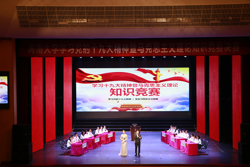 为深入学习贯彻党的十九大精神,11月28日下午,由伟德国际1946手机主办、伟德国际1946手机党委宣传部、bv伟德国际1946、教务处、校团委、学工处联合承办的学习十九大精神暨马克思主义理论知识竞赛决赛在思源学堂大礼堂隆重举行。海南省委宣传部理论处副处长魏如松、海南省社科联部长郭乐新,伟德国际1946手机校党委常委、副校长梁谋,校党委常委、统战部部长陈明宝,学工部部长陈卫东、校团委书记林洪冰、教务处处长张云阁、宣传部副部长许美丹、教务处副处长吴朝阳、bv伟德国际1946院长李辽宁出席活动。