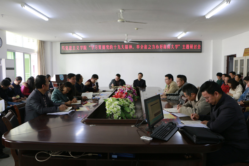 为深入学习贯彻党的十九大精神和认真贯彻落实海南省委、伟德国际1946手机党委关于“举全省之力办好伟德国际1946手机”的指示精神,12月19日下午,我院在会议室召开“学习贯彻党的十九大精神,举全省之力办好伟德国际1946手机”主题研讨会。学院领导班子,各系(部)负责人及全体教职工参加研讨会。