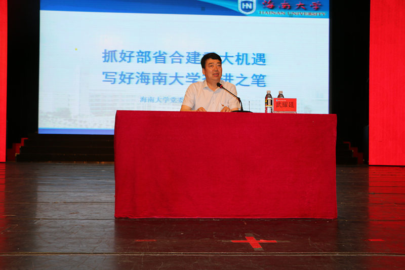 武耀廷教授指出,部省合建伟德国际1946手机等14所高校是贯彻落实十九大精神,推进教育公平、全面提升西部教育质量的重大举措,成为部省合建高校后,教育部将参照直属高校模式对伟德国际1946手机的建设发展予以指导支持,同时,海南省对伟德国际1946手机建设发展的支持力度只增不减,并着力推动落实“举全省之力办好伟德国际1946手机”。他强调,成为部省合建高校是伟德国际1946手机在新时代迎来的重大发展机遇,有利于充分整合教育部、海南省、天津大学和伟德国际1946手机的资源,充分挖掘伟德国际1946手机自身的内在发展潜力,明确新目标、制定新举措、促进新发展。他表示,为把握好部省合建重大机遇,校党委将团结和带领全校师生,进一步强化党的领导作用;推进综合改革,建立和完善现代管理体制机制;提升科技创新和社会服务水平,加强师资队伍建设;加快一流学科和博士点建设,建设发展好伟德国际1946手机的优势专业和学科;加大高层次人才引培力度,提高人才培养质量,提升生源质量;弘扬优良的校风、教风、学风;保持风清气正,立足海南,服务国家。他希望,海大学子要以更高的政治站位、更强的使命意识、更大的责任担当面对学习和生活,并提出三点建议,一是感党恩、听党话、跟党走;二是以国家民族复兴为己任;三是从小事做起,脚踏实地,多干实事,理性批判。