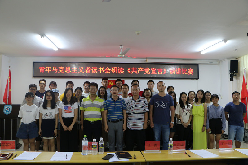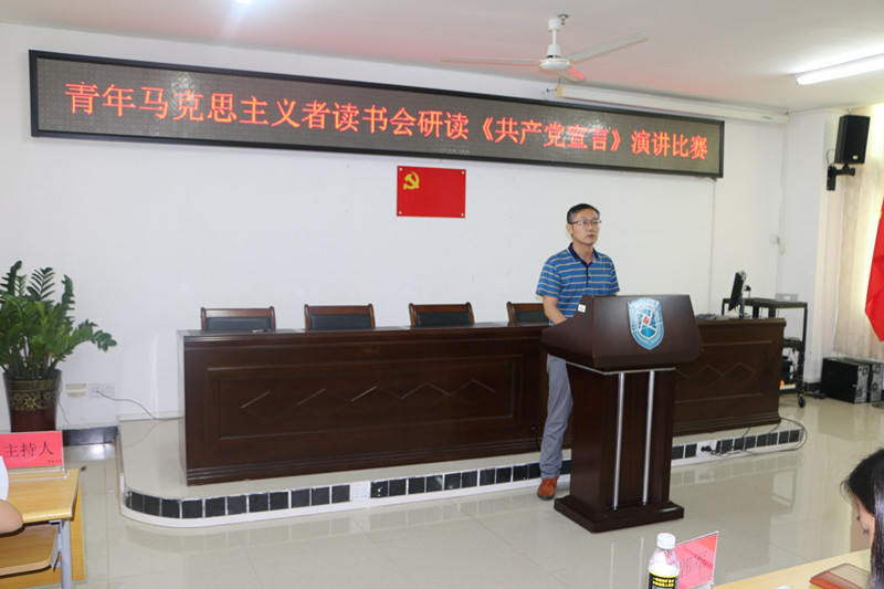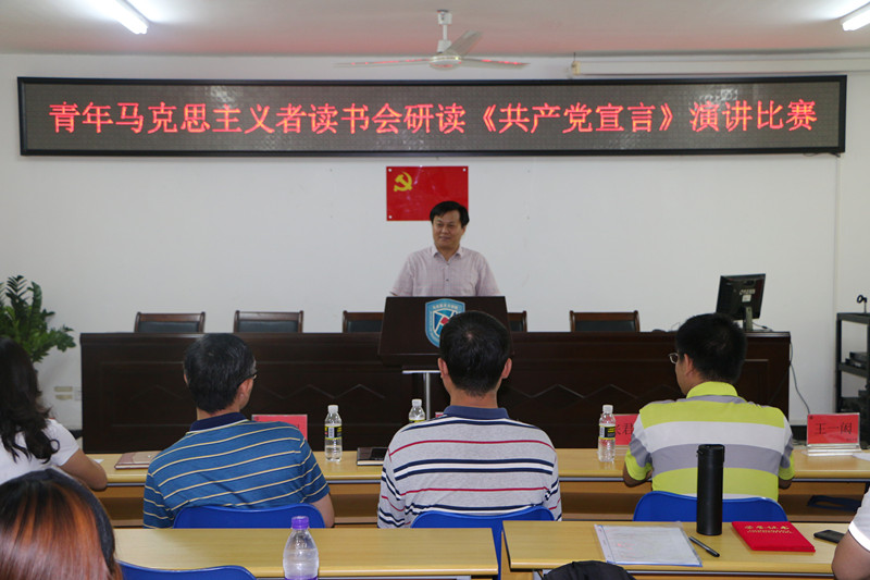 为纪念《共产党宣言》发表170周年,促进广大同学深刻感悟和把握马克思主义真理力量,提升马克思主义理论素养和语言表达能力,bv伟德国际1946青年马克思主义者读书会以重温《共产党宣言》为主题组织研读原著、撰写心得、公开演讲系列活动。5月12日下午,研读《共产党宣言》演讲比赛在社科楼A315隆重举行。bv伟德国际1946院长李辽宁出席活动并讲话,教务处副处长吴朝阳、bv伟德国际1946副院长王善、bv伟德国际1946教师王一闳、张君成、周郭军担任比赛评委。