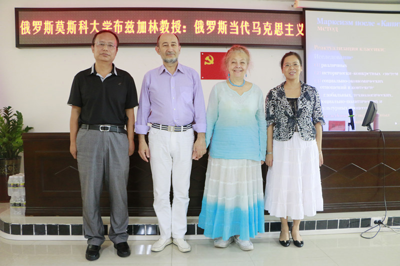 6月19日下午,莫斯科大学马克思主义研究教育中心主任、终身荣誉教授布兹加林教授和莫斯科金融法律大学布拉夫卡教授受邀来我院作题为“俄罗斯当代马克思主义”的学术讲座。讲座由海南师范大学陈红教授担任翻译,bv伟德国际1946副院长王善主持,我院部分师生共同参加。