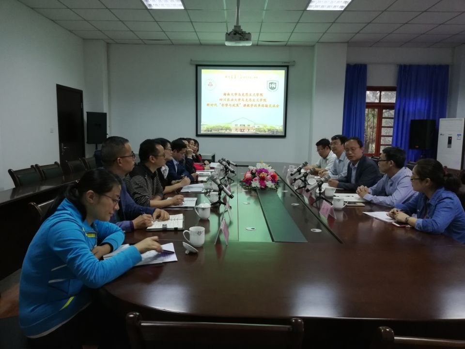 交流期间,受到四川师范大学bv伟德国际1946党委书记李北东、副院长王曦和四川农业大学bv伟德国际1946党委书记杨世义、院长赵晓霞的热情接待。在详细了解四川省高校形势与政策课程研究会的建设状况、发展前景、运行机制和未来设想,以及四川省形势与政策教师职业能力提升教学竞赛的有关情况之后,双方还就新时代《形势与政策》课程建设与改革、思想政治教育专业建设、思政课实践基地等问题展开详细深入的交流。交流最后,双方还就未来搭建两省高校之间的形势与政策教育教学资料共享、专家资源共享等实质性问题,达成合作的意向和意见。