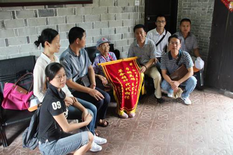 张云阁副院长代表bv伟德国际1946向103岁高龄的红色娘子军老战士王运梅赠送了锦旗
