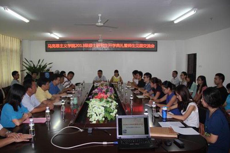 8月31日上午,我院在学院会议室隆重举行2013级硕士研究生开学典礼暨师生交流会。李德芳院长、梁谋书记和张云阁副院长出席,在校的研究生导师,学院综合办、学工办、教研办负责人、研究生辅导员和教学秘书、全体研究生新生和部分老生参加开学典礼。典礼由张云阁副院长主持。