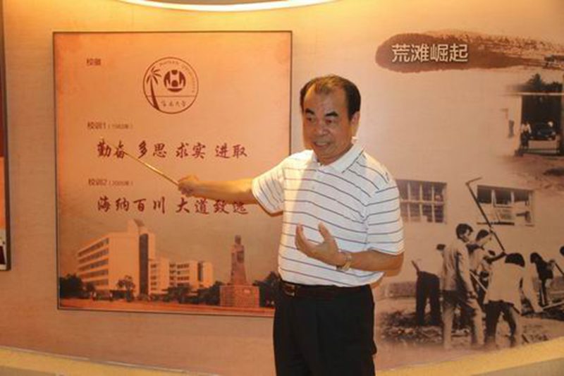 刘康德书记向同学们介绍原华南热带农业大学校训和两院精神