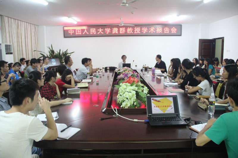 10月8日晚,中国人民大学龚群教授应邀为我院师生作题为《重建日常道德》的学术报告。报告会由李德芳院长主持。 龚群教授在报告中,结合当前社会出现的一些社会热点问题,分析了我国在社会转型过程中及城市化进程中出现的种种道德失范的现象及其产生的原因,提出要建立与现代化社会相适应的日常道德规范。针对我国公共道德出现的问题,他指出,所有社会成员应具备的最宝贵的道德防线和最基本的道德要求是:尊重生命,善良,诚实,正直而有正义感。培养日常道德,最重要的是使人成为一个善良的人,同情心是道德培养的起点。 在报告会互动环节,同学们踊跃提问,竞相提出自己的看法,龚教授都一一做了精彩回答。报告会持续两个多小时,龚教授精彩的讲解赢得了现场师生的热烈响应。报告会在热烈的掌声中圆满结束。 龚群教授简介:现任中国人民大学教授,博士生导师,全国著名伦理学者、教育部文科重点建设基地伦理学研究中心副主任。已出版学术专著17部,译著4部,发表的学术论文150余篇。学术文字累计600余万字,近10年来其论著论文在CSSCI的引用数近200次。