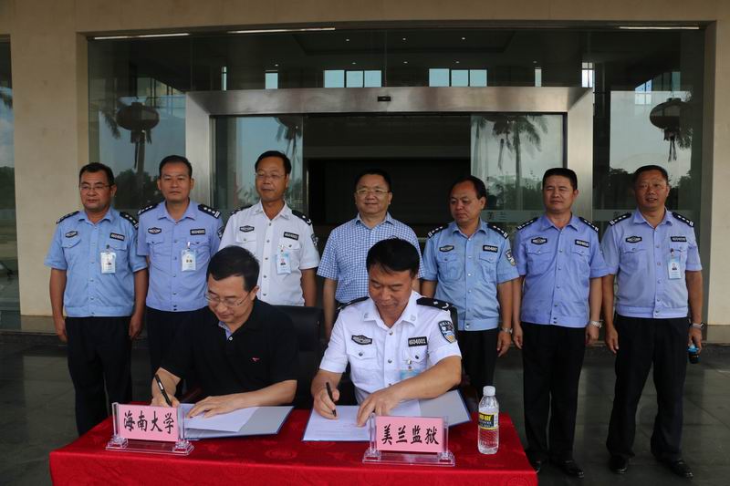 海南省美兰监狱长、党委书记杨平和bv伟德国际1946院长李德芳共同签订共建社会实践教学基地协议书并为基地揭牌。 仪式结束后,教师和学生代表在警官们的指引下,分批进去监区参观,了解监狱的日常管理和犯人劳动改造的情况等。