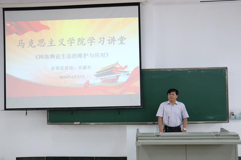 4月12日下午,省委宣传部、省互联网信息办公室网络新闻管理处处长、省互联网与信息化安全专家史盛东应邀为我院研究生和本科生作题为“网络舆论生态的维护与应对”的专题报告。省委宣传部理论处副处长杨志斌,伟德国际1946手机宣传部王群生,bv伟德国际1946党委书记段捷频及部分老师旁听报告。报告会由李辽宁副院长主持。