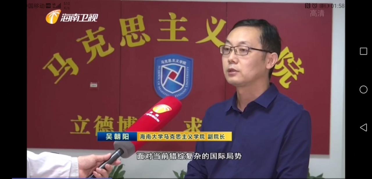 10月30日晚,海南卫视《新闻联播》栏目播出了对bv伟德国际1946副院长吴朝阳的采访。吴朝阳在接受采访的时候说:“面对当前错综复杂的国际局势,尤其是今年我们又遭受到新冠疫情的冲击,我们党领导团结全国各族人民,全面建成小康社会取得了突破性的决定性的成就,极大鼓舞了全国各族人民建设社会主义事业的信心”。