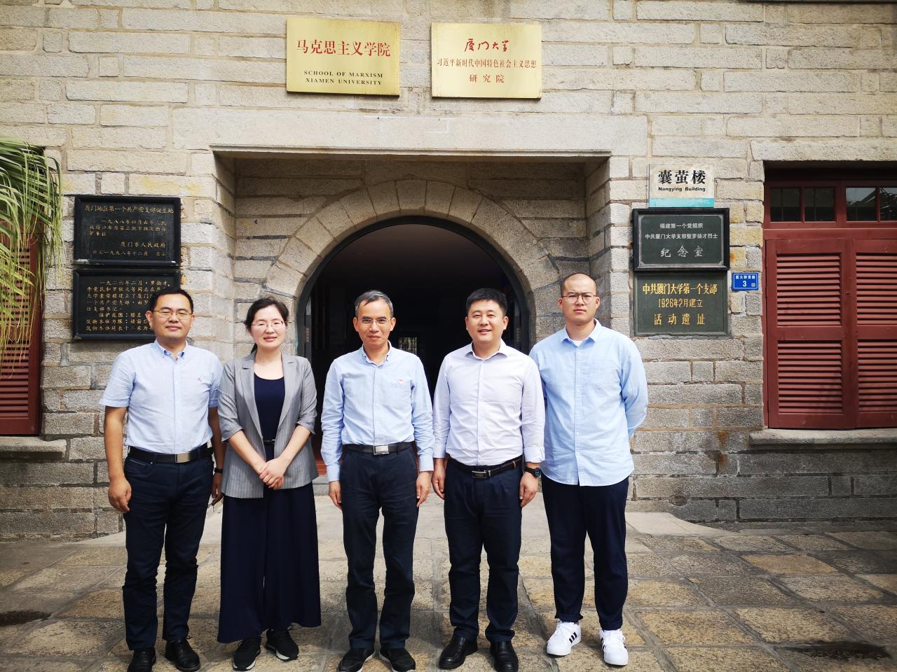 11月1-4日,院党委副书记张井富、思想道德修养与法律基础教研部党支部书记蒋玉、研究生党支部副书记原广一行到厦门大学bv伟德国际1946学习交流。厦门大学bv伟德国际1946党委书记侯利标介绍了学院党委基本情况,特别是学院实施“四项工程”,创建“全国党建工作标杆院系”的做法及探索。在福建师范大学bv伟德国际1946,党委书记张爱民、组织委员陈玉玲等人参加座谈交流会,张爱民书记带领大家实地考察了学院理论学科群展览馆,并详细介绍了学院党建工作的特色项目。