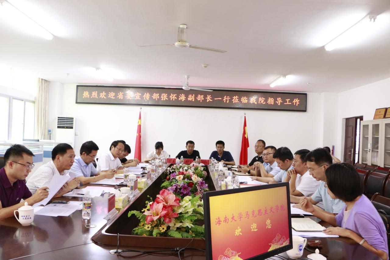 张怀海在认真听取汇报并与参会人员进行充分交流后发表讲话,对bv伟德国际1946近些年的建设发展和所取得成效给予充分肯定。他指出,海南自贸港建设让海南成为全国乃至全球舆论关注的重点焦点,做好意识形态工作、舆情工作至关重要。伟德国际1946手机作为海南龙头高校,要按照沈晓明书记要求,当好参与者、参谋部、孵化器和后备队,服务海南全面深化改革开放和自由贸易港建设,bv伟德国际1946在海南意识形态工作中具有特殊使命和责任。他认为,海大马院正处于快速发展时期,在全国高校马院中显示度和影响力明显提升,学院制定的“十四五”规划具有较强的可操作性,希望海大马院在海南自贸港建设背景下,提高政治站位,对标全国、放眼全球,高标准、高要求推进相关建设发展工作。他表示,省委宣传部将按照中央和省委相关文件精神,进一步关心和支持海大马院建设发展,推进落实部校共建bv伟德国际1946相关工作,扎实推动马院内涵式发展,切实提高人才培养质量。
