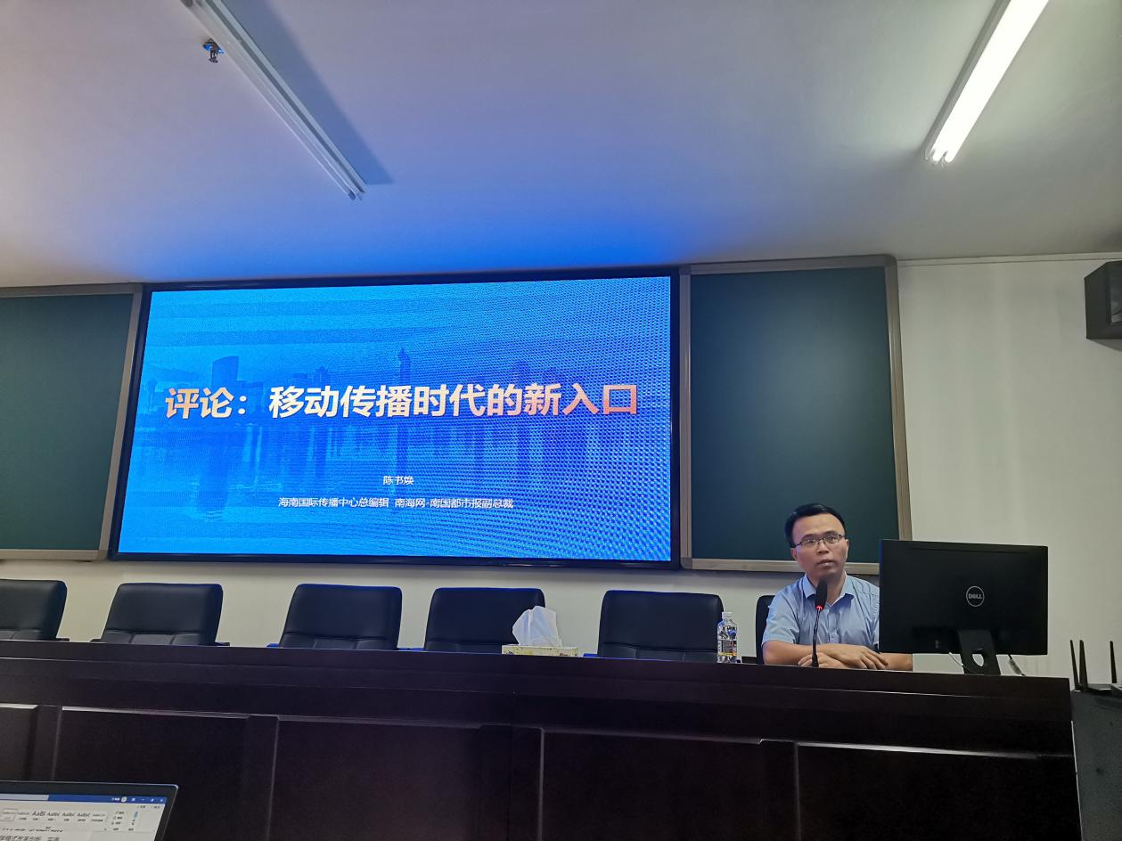 报告会上,陈老师以移动传播时代的新入口为主线,“百年未有之大变局”的时代背景为抓手,从“什么是评论、大学生评论写作的意义、如何进行评论写作”三个方面为我们作了主题鲜明,内容丰富,深入浅出的精彩报告,以更加开阔和新颖的视角和案例,引导同学们积极参与到评论写作中来。