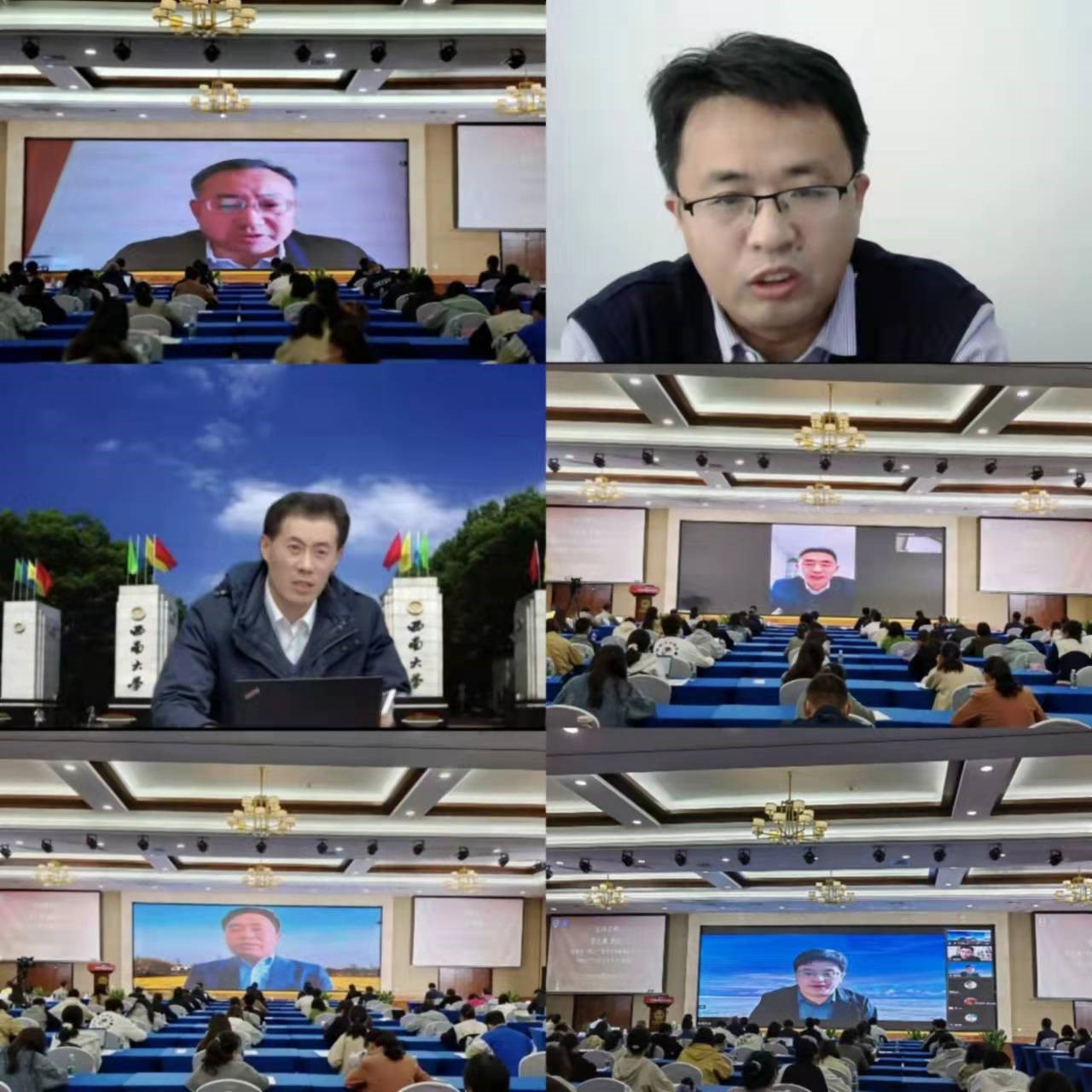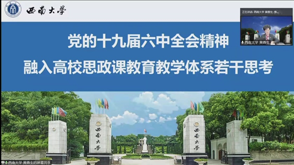 在主题发言阶段,来自西安交通大学、兰州大学、郑州大学、西南大学等15所高校的16位专家,围绕着“庆祝中国共产党成立100周年暨学习党的十九届六中全会精神”的会议主题,在“中国共产党建党一百周年的伟大历史进程及经验研究”“关于党的十九届六中全会精神解读”“高校马克思主义理论学科建设”“高校思想政治理论课教学改革与创新”等方面展开了深入探讨。