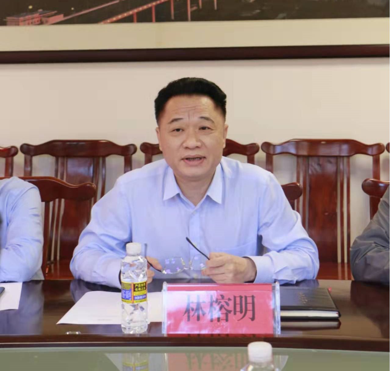 林榕明在欢迎会上致辞。他指出,主流意识形态工作发展建设具有重要意义,要着力把握主流意识形态话语权,加强党对社会舆情的管理和宣传。当下意识形态的宣传模式不断创新,要巩固好意识形态阵地,提高引领和处理舆论的能力。他强调,实习学生要不断用正确理论武装头脑,指导实践,推动工作。他希望,海口市委宣传部与bv伟德国际1946的合作能够开出共建共享的硕果,在合作过程中互相探讨新的合作模式,推动双方资源共享、优势互补、互惠双赢、相互促进。