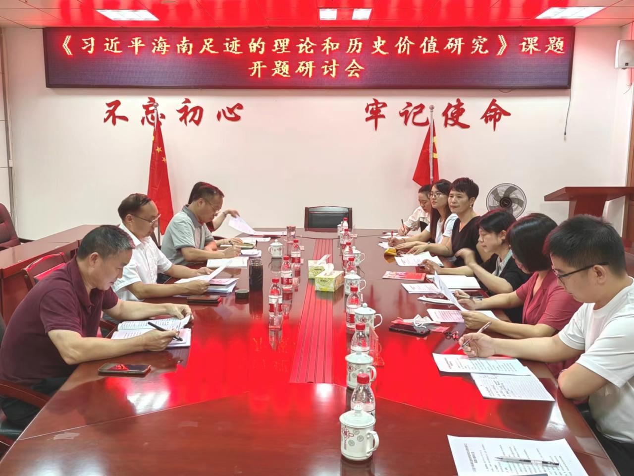 9月7日下午,2022年度海南省哲学社会科学规划(重大)课题《习近平海南足迹的理论和历史价值研究》开题研讨会在省社科联609会议室召开。省社科联党组书记(课题组组长)王惠平,海南出版社总编辑(课题组执行组长)谭丽琳,省社科联规划办主任黄朝阳、科研处处长邓章扬,bv伟德国际1946专家团队杨娜、王雅娟、葛士新、刘筱笛等共同参与研讨。