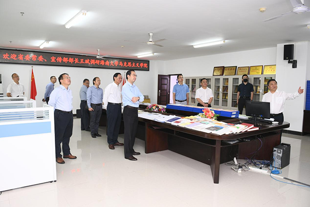 本站讯(记者 王一钦 王博 摄影 吕燕萍)11月23日,海南省委常委、宣传部部长,副省长王斌一行到伟德国际1946手机调研,并在办公楼501会议室举行座谈会。海南省委宣传部副部长陈小华;伟德国际1946手机党委书记符宣国,党委副书记、校长骆清铭,党委常务副书记王崇敏出席会议。会议由符宣国主持。