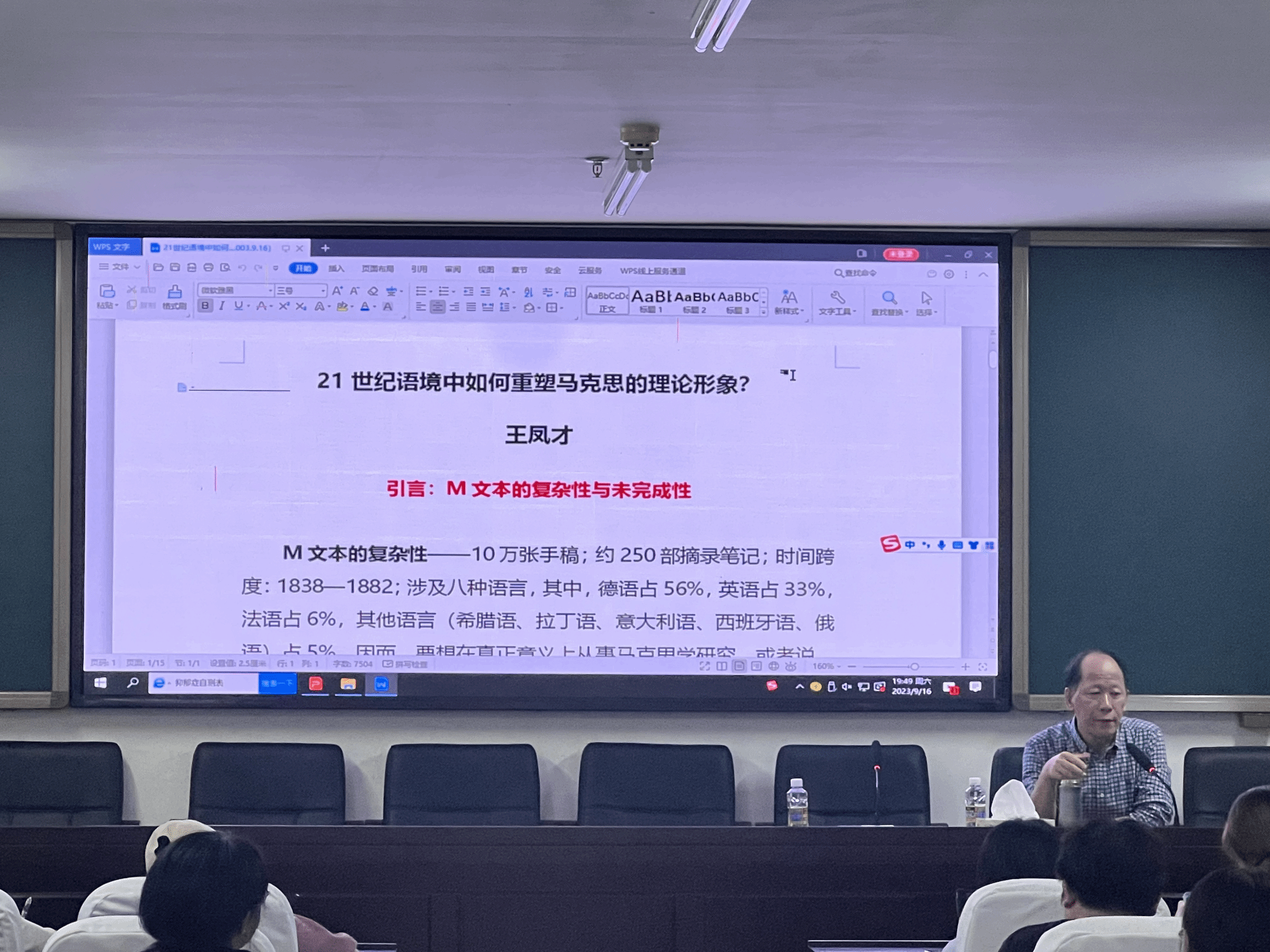 2023年9⽉16⽇晚,海南大学bv伟德国际1946“冬季小学期系列课程”第一讲在社科楼A309会议室举⾏,复旦大学特聘教授、哲学学院与bv伟德国际1946博士生导师王凤才教授应邀做了题为“21世纪语境中如何重塑⻢克思的理论形象”的学术报告。报告由bv伟德国际1946黄启祥教授主持,2021级本科生以及2023级全体研究生聆听了此次报告。
