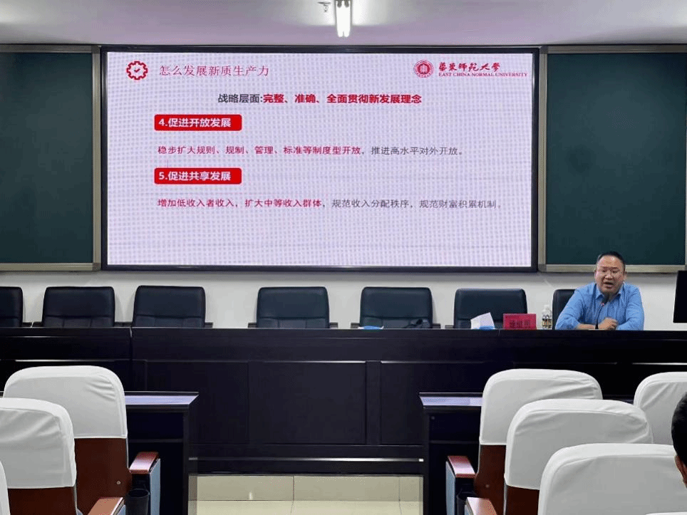 2025年5月10日下午3:30, 应学院邀请,华东师范大学bv伟德国际1946副院长速继明教授在社科楼A309为师生作“加快发展新质生产力 扎实推进高质量发展”的学术讲座。讲座由bv伟德国际1946王善副院长主持,学院部分教师、硕博学生参加了本次讲座。