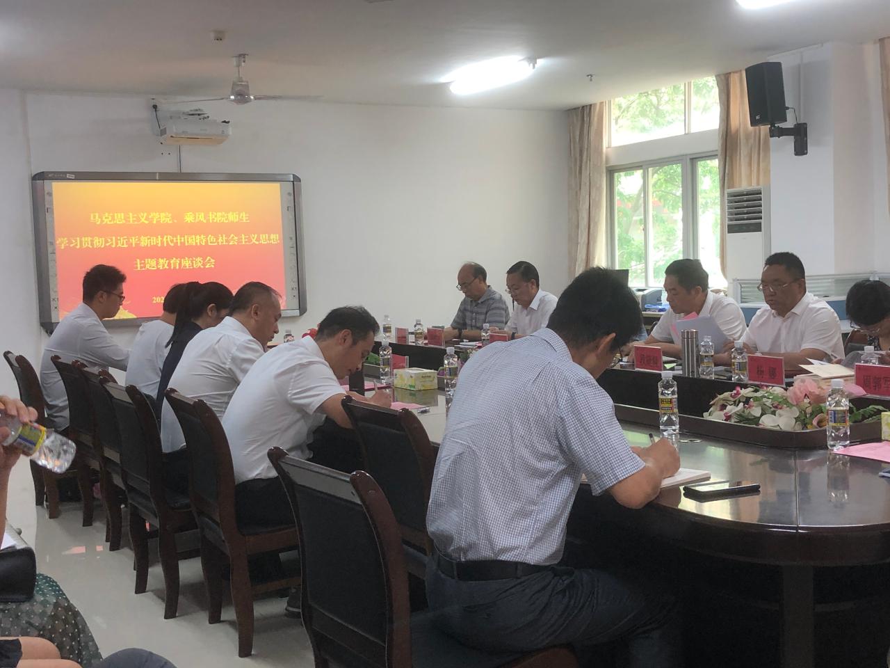 4月21日下午,bv伟德国际1946和乘风书院师生学习贯彻习近平新时代中国特色社会主义思想主题教育座谈会暨主题教育读书班辅导报告会在社科楼A-311室顺利召开,与会师生围绕“深入学习研究习近平新时代中国特色社会主义思想,在中国式现代化和中国特色自由贸易港建设中发挥思想引领作用”这一主题进行深入研讨。海南省委主题教育第九巡回指导组成员黄三喜、伟德国际1946手机主题教育领导小组办公室综合组副组长徐望来,bv伟德国际1946党委书记段捷频、副院长杨娜、吴朝阳,乘风书院党委副书记周郭军出席,bv伟德国际1946各党支部书记、各行政办主任、教师党员代表和乘风书院学生党员代表参加座谈会。会议由bv伟德国际1946党委书记段捷频主持。