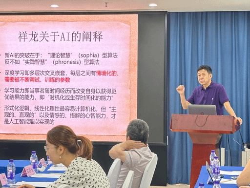 下午第一场由北京大学李猛教授主持。同济大学柯小刚教授认为“现象学的中国化”应理解为现象学与中华古学之间自然而深层的相契,而非外来哲学的本土改造,通过现象学方法重新解读中华古学,能赋予传统思想新的生命力。山东大学的李章印教授认为建设现代文明需对汉字进行创造性阐释,推动传统训诂学在保持独特性的基础上实现当代创新。西安交通大学的王珏教授从儒家角色伦理学视角出发,探讨养老机器人是应替代人类的社会角色还是仅作为辅助,以系统评估其伦理适用性。下午第二场由浙江社会科学院李旭教授主持。云南大学的王志宏副教授表示,张祥龙教授以比较哲学的视角探讨中国古代哲学的合法性与可能性,阐明了比较哲学在中西哲学对话中的关键作用。辽宁大学赵炎副教授通过分析张祥龙先生构成边缘域思想的五个维度,探讨了实际生活经验中的时间、空间和阴阳如何在缘-源发生中构成边缘域。山东大学的祁伟博士认为张祥龙教授以“非普遍主义”视角揭示了儒家哲学的独特性,主张儒家文化的核心在于实践中的“慈-孝”之爱,并提出重建儒教应以家庭德性为基础,推广至社会各领域。维也纳大学的朱锦良博士就非概念化思维进行阐述以及对汉语思想中语言和实在的关系与西方思想中语言和实在的关系行了类比。