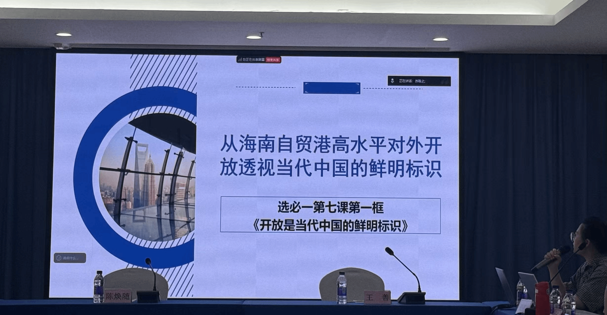 来自伟德国际1946手机等四位老师围绕“高水平对外开放在海南自贸港的创新实践”进行了“同题异构”教学展示。上海师范大学附属儋州实验学校的吴丽贞老师通过与AI小椰对话形式,让课堂在生动活泼的氛围中实现了知识的传递;东方市铁路中学的杨宗舒老师用“知信行”的理念践行国家战略到个人行动的落实;临高县临高中学的陈莹老师用“我与自贸港”,从小案例到海南上升至国家,诉说了不是“追随者”,而应是“引领者”的青年责任;伟德国际1946手机的安睿颖老师以“是什么、为什么、怎么做”贯穿,“国际循环和国内循环”的供需为理论抓手,用“围棋布局”思维,讲述了国家战略到海南实践的制度指引与实践创新之路。